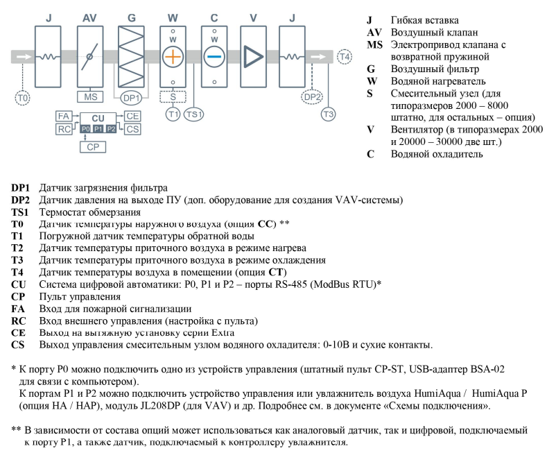 Приточные установки Breezart Aqua W с водным охладителем, водяным нагревателем и смесительным узлом с 2-х или 3-х ходовым клапаном (узел подбирается исходя из типа теплоснабжения).