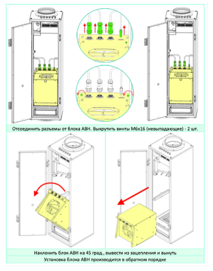 - Съёмный блок автоматики, вентиляции и нагрева (АВН)