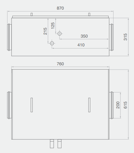 - для подсоединения к системе воздуховодов имеются один вход,один выход Ø 200;
