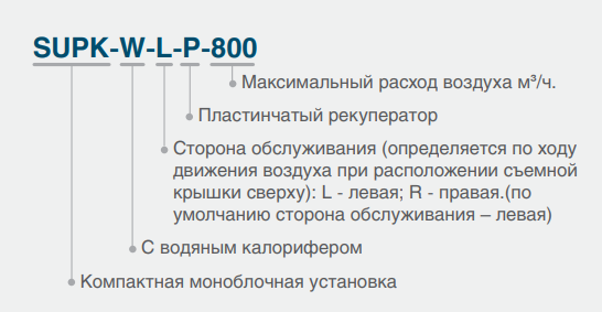 Технические характеристики универсальной приточной установки SUPK-W-P