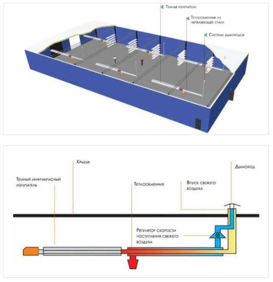 Наше предприятие представляет инновационное решение, которое объединяет рекуперацию тепловых ресурсов, высокоэффективные темные излучатели Schwank, а также интеллектуальное управление отопительной системой с показателем эффективности до 110%.