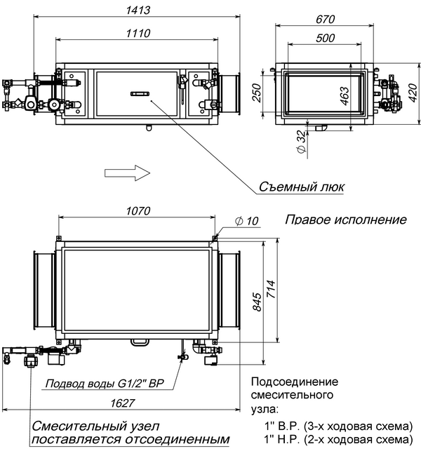 Габаритные размеры Breezart 2000 Humi Aqua P