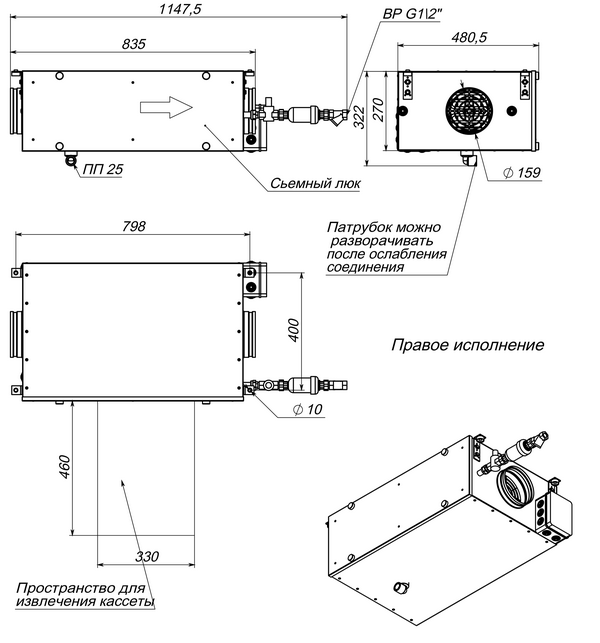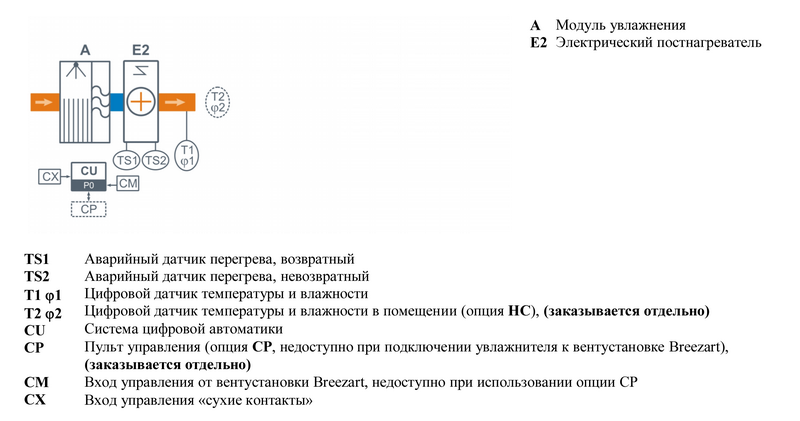 - CP – Управление увлажнителем Breezart с пульта (заказ. отдельно), вкл./выкл. по сухим контактам;