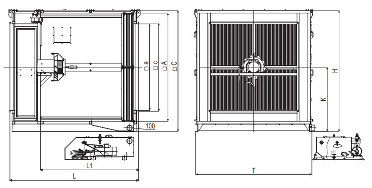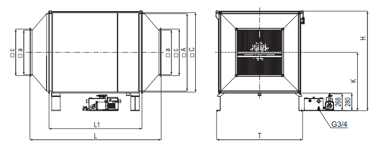 Проходное сечение фланца секции увлажнения, мм | ¨A | 451 | 559 | 711 | 903 | 1236 | 1596 | 2000 | ||