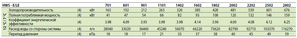 (4) Температура воды на стороне системы (вход/выход) 12 °C / 7 °C; конденсат 45 °C