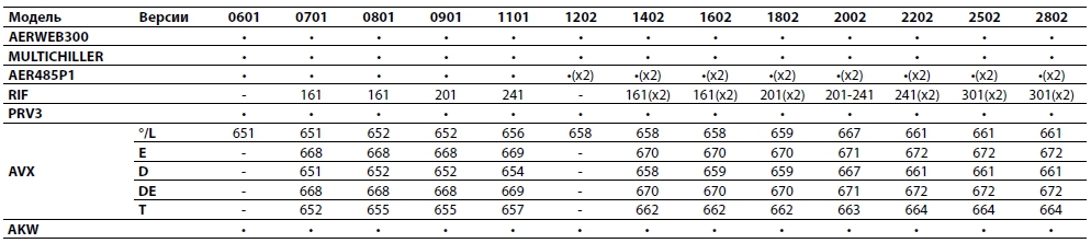 AERWEB300: опция AERWEB обеспечивающая дистанционное управление работой холодильных машин с помощью персонального компьютера и интернет соединения через стандартный браузер; 4 версии: