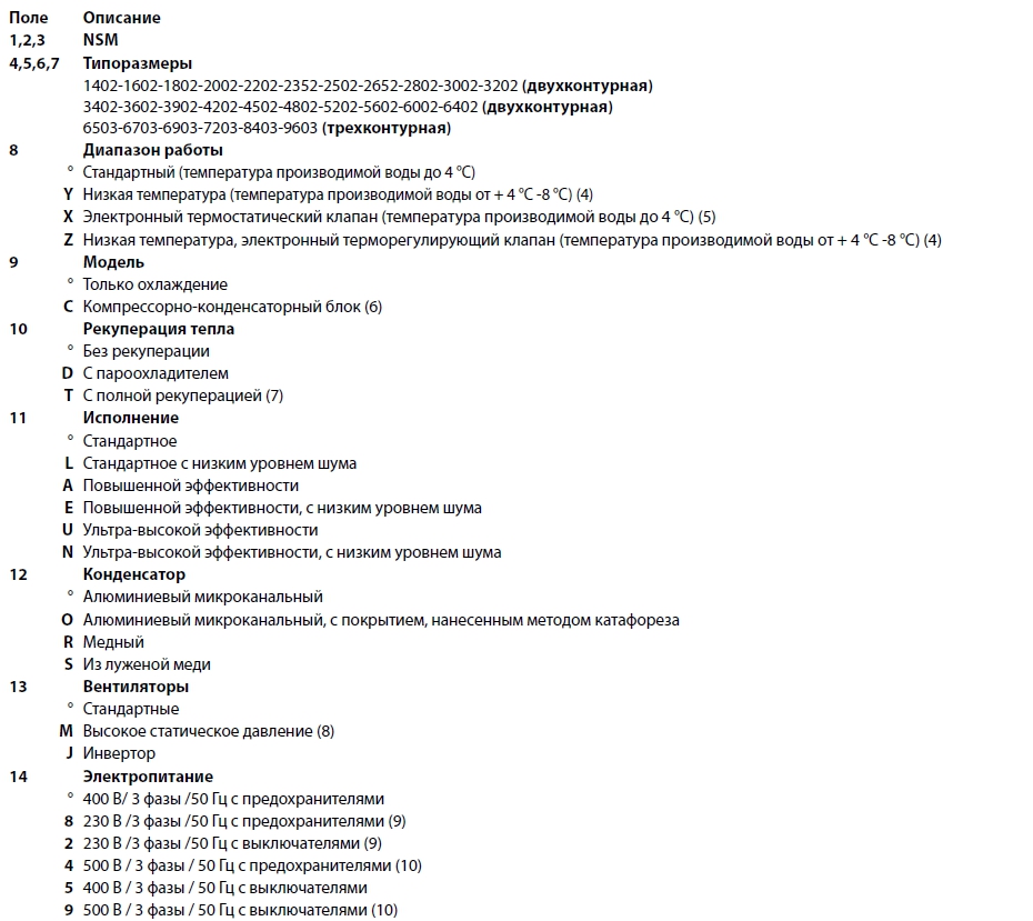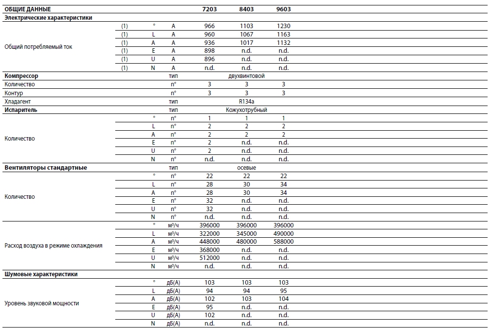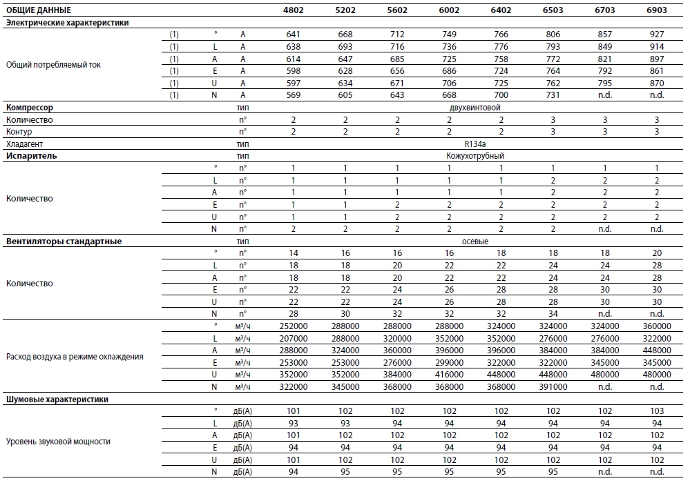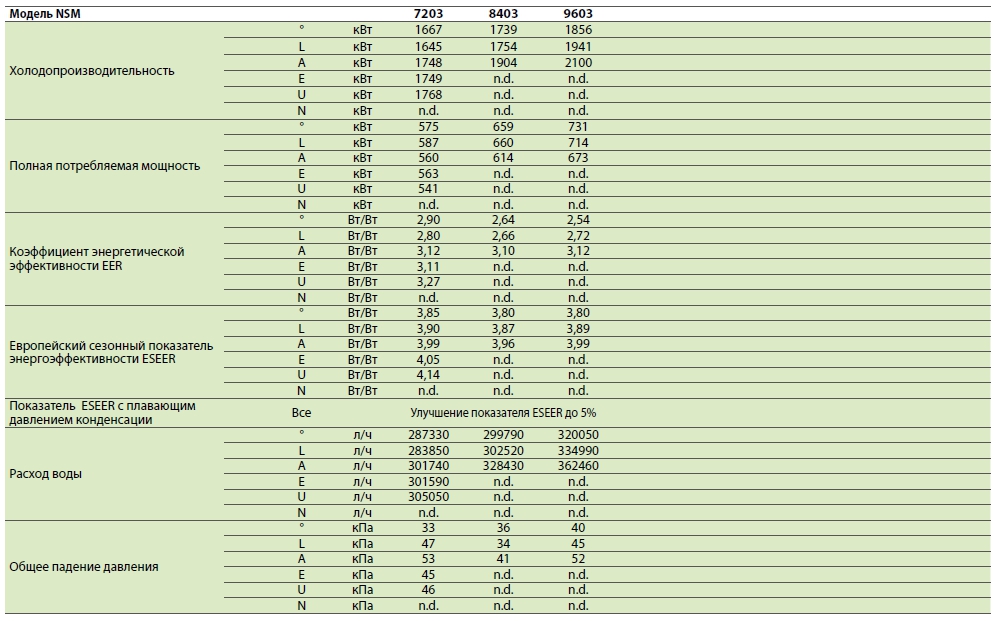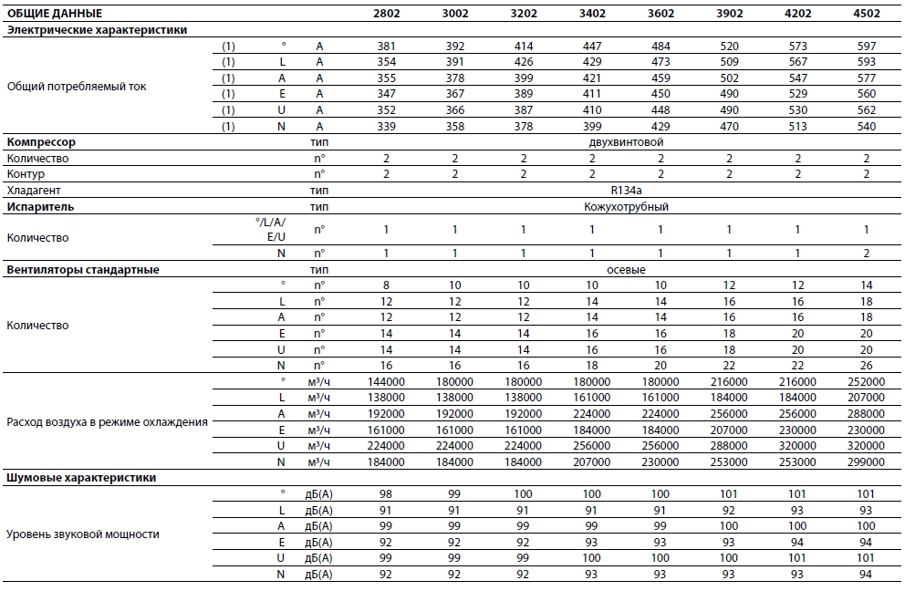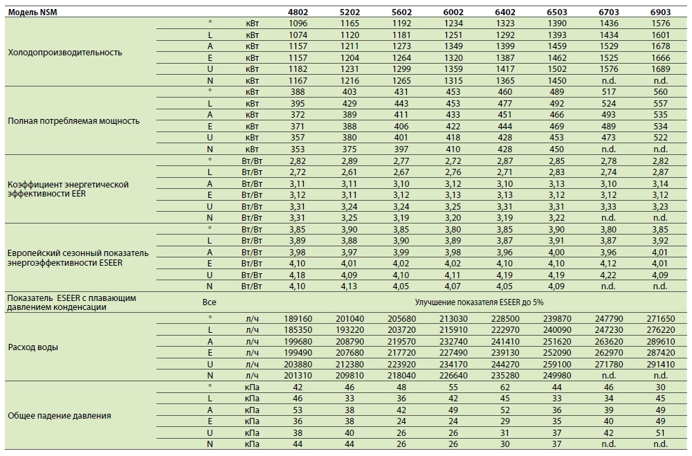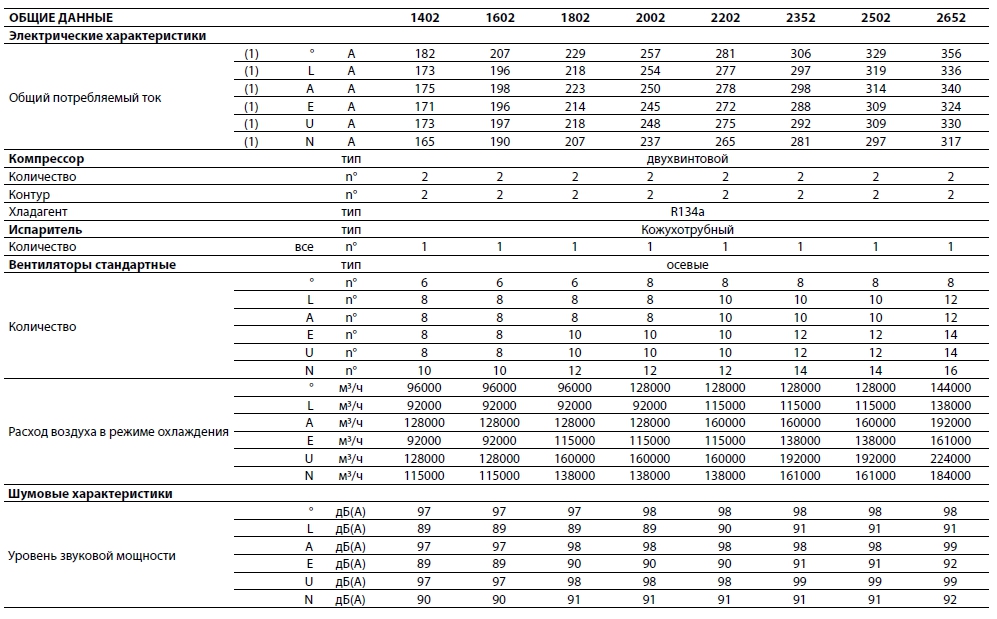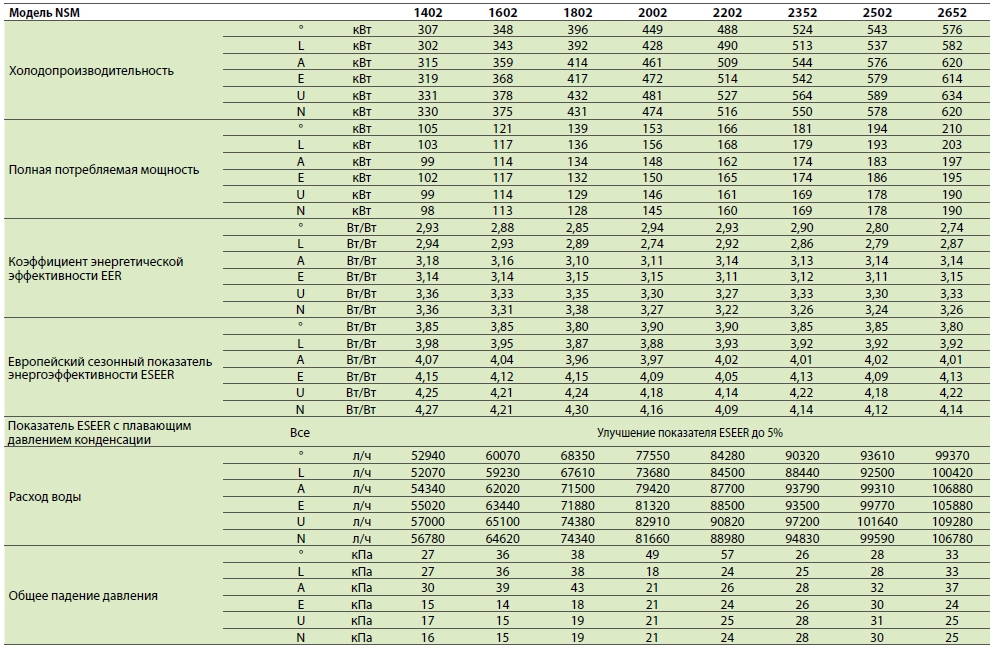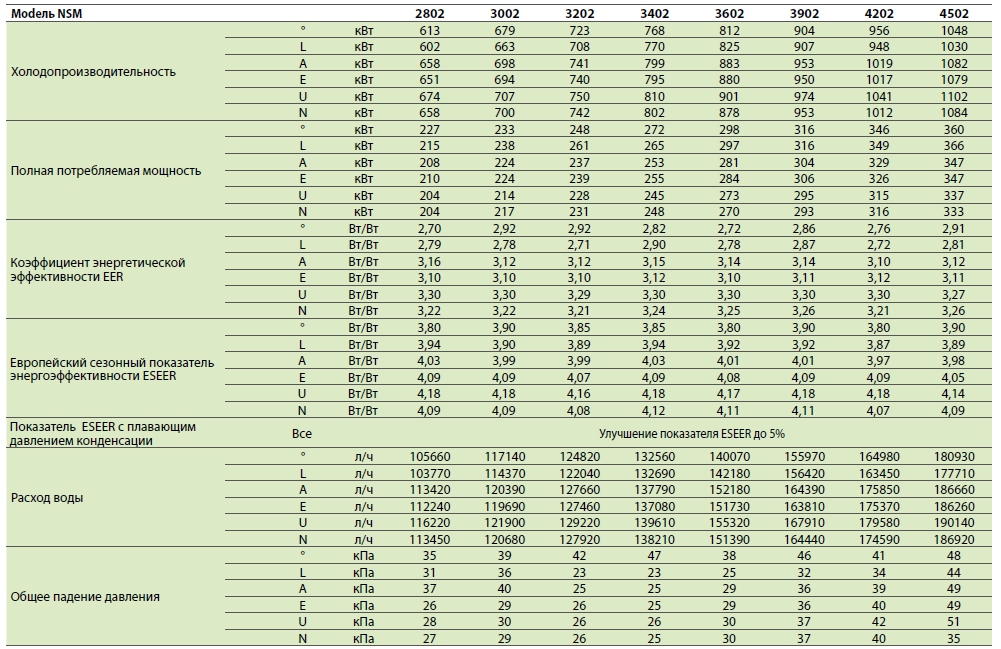 (1) Температура воды в испарителе 12 °С/ 7 °С; температура наружного воздуха 35 °С