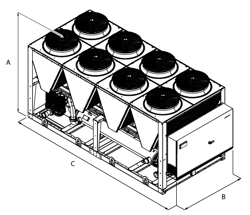 - Чиллер с 2 или 3 контурами хладагента, предназначенными для обеспечения максимальной эффективности при полной нагрузке, обеспечивая высокую эффективность при частичных нагрузках и обеспечивая непрерывность в случае остановки одного из контуров