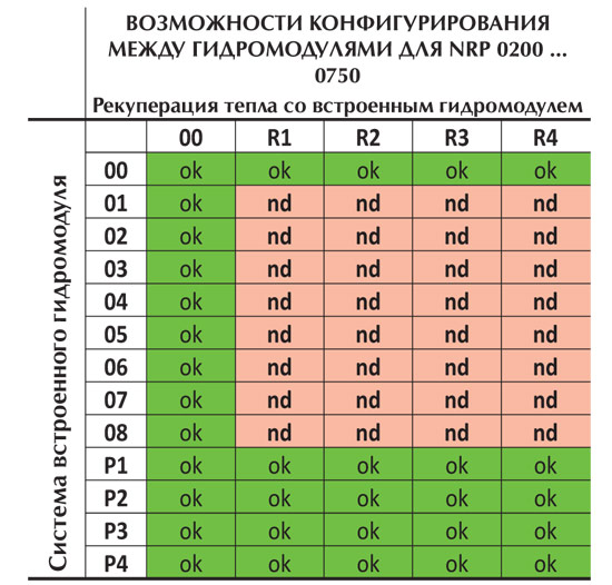 Рекуперация тепла со встроенным гидромодулем 00 без насосов R1 с 1 низконапорным насосом R2 с 2 низконапорными насосами R3 с 1 высоконапорным насосом R4 с 2 высоконапорными насосами |