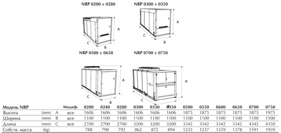 - NRP является многофункциональной холодильной машиной внешней установки, работающая на хладагенте R410A, предназначенная для 2-х или 4-х трубных систем. С помощью одной машины можно обеспечивать одновременное и независимое производство горячей и холодной воды круглый год.