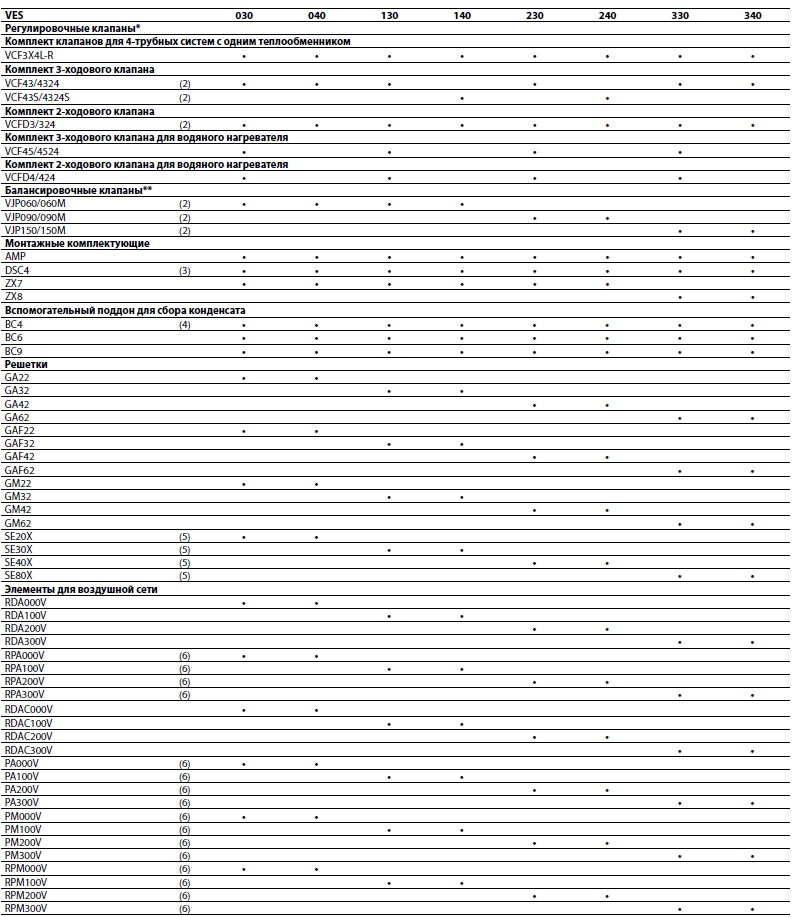 - VCZ_X4: Комплекты клапанов для одного (основного) теплообменника, подключенного к 4-трубной системе с разделенными контурами «Охлаждение» и «Нагрев». Комплект состоит из 2 клапанов с 3-ходовым и 4-портовым соединением в комплекте с сервоприводом, изоляцией для клапанов и соединительных трубок. Комплект клапанов VCF1X4L подключается только с левой стороны.