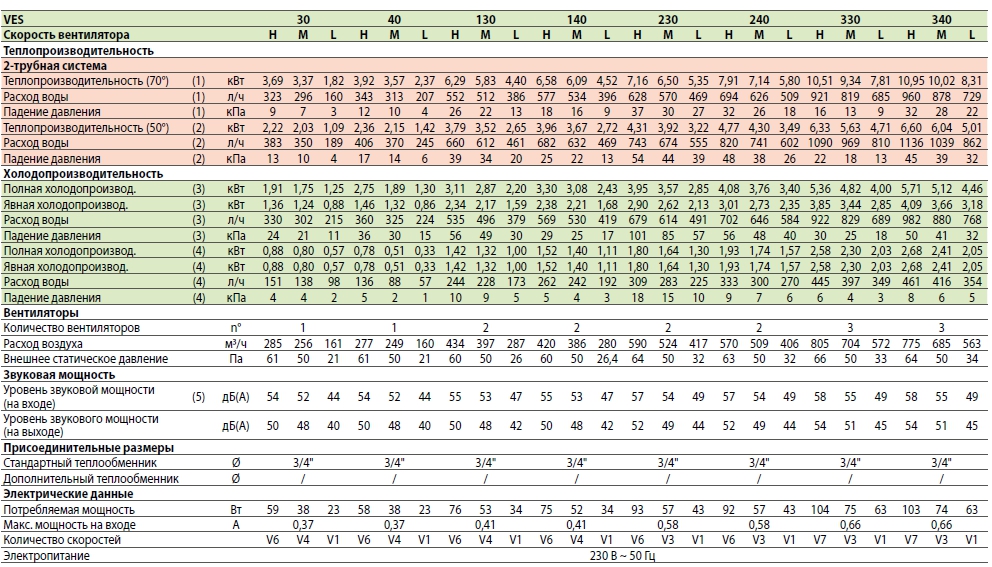 (2) Температура воздуха в помещении 20 °C; Температура воды (на входе / выходе) 50 °C / 45 °C (EUROVENT)
