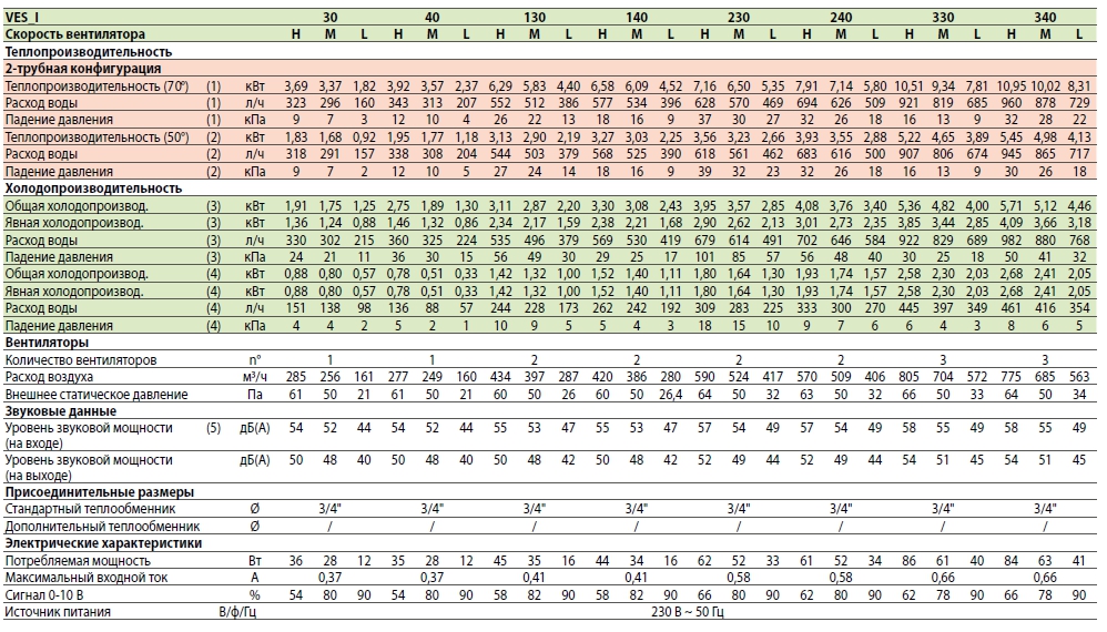 (3) Воздух в помещении 27 ° C по сухому термометру / 50% по мокрому термометру; Вода (на входе / выходе) 7 ° C / 12 ° C (EUROVENT)