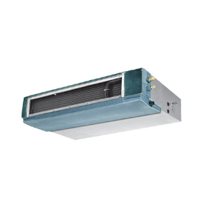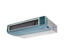 - Скрытый монтаж. Блоки канального типа устанавливаются, например, за подвесным потолком. Воздух забирается и распределяется воздуховодами по кондиционируемым помещениям: он забирается из помещения через решетку, обрабатывается внутренним блоком и по системе воздуховодов снова подается в помещения через распределительные решетки. Блок снабжен вентилятором, позволяющим преодолеть сопротивление распределительных воздуховодов и решеток.