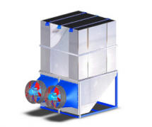 Испарительная градирня ГРД 100Н оборудована двумя мощными вентиляторными установками. Оборудование используется для охлаждения воды в системе оборотного водоснабжения.