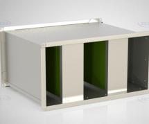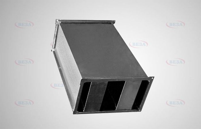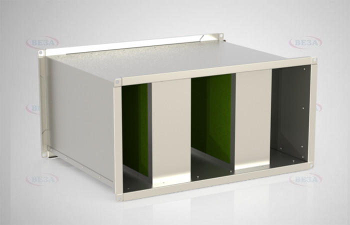 - Шумоглушитель подходит для установки внутри помещений в воздушных каналах с сечением прямоугольной формы.