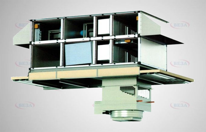 Внешний блок состоит из вентиляторов, рекуператоров тепла, систем фильтрации и воздушных клапанов.