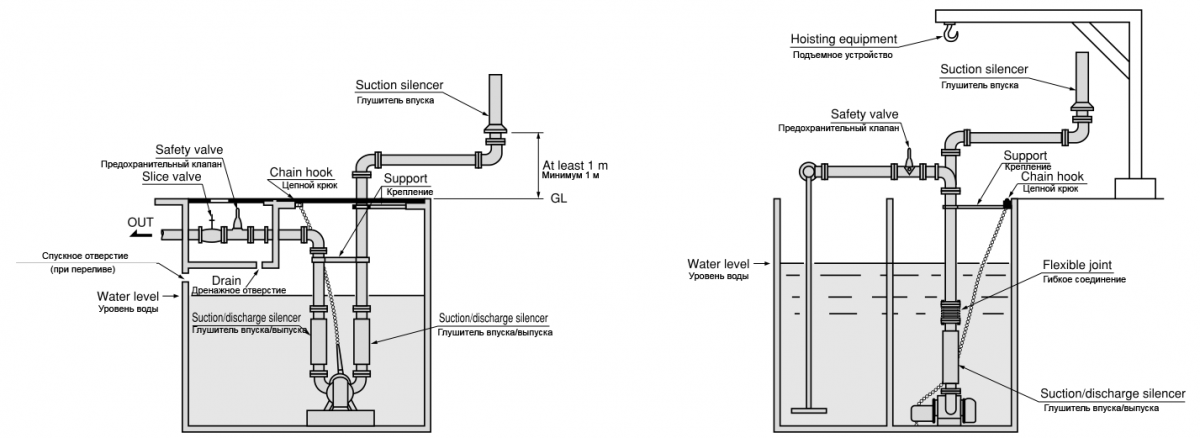 - Исключить контакт подъемной цепи с трубопроводами. (Предотвратить контакт подъемной цепи и трубопроводами при колебании воды от аэрации);