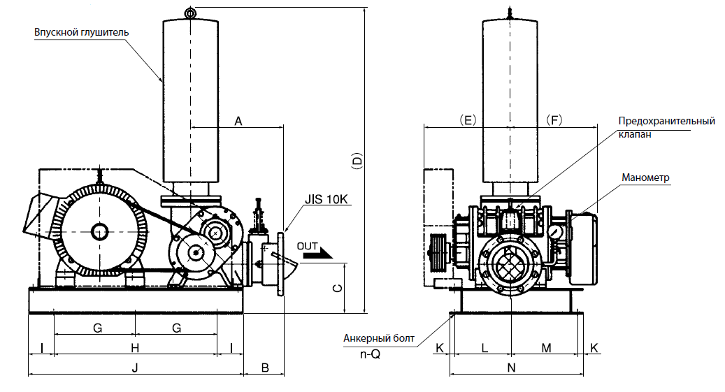 Габаритные размеры сухой воздуходувки ANLET серии BE-H