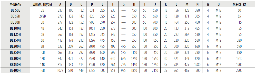 - Диаметр трубы: 50-65-80-100-125- 150-200-250-300- 350-400 мм