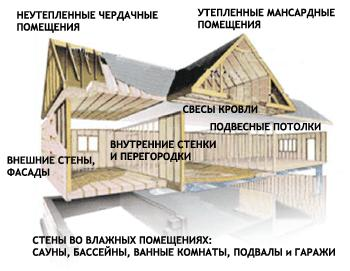 - Утепленные и неутепленные чердачные и мансардные помещения;
