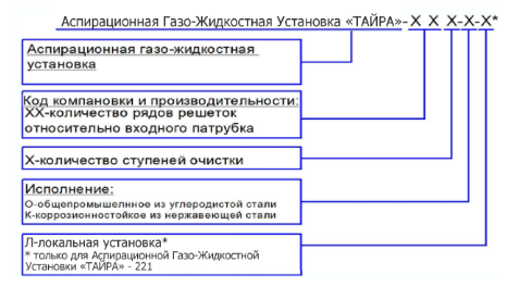 A/B/С – код компоновки Аспирационной Газо-Жидкостной Установки «ТАЙРА».
