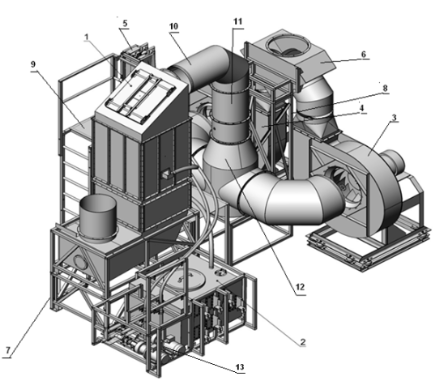 - Устойчивость к загрязнению — установка справляется с воздухом, содержащим до 100 г/м³ пыли с размером частиц от 0,4 до 70 мкм.