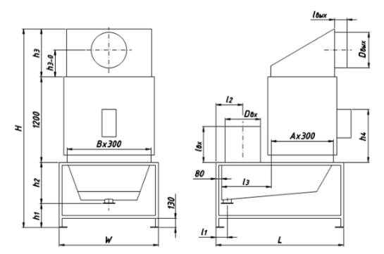 Возможно множество вариантов изготовления аспирационных газо-жидкостных установок «ТАЙРА» с различным сочетанием номеров A, B и диаметрами входного (Dвх) и выходного (Dвых) патрубков. Ниже приведены формулы для расчета основных размеров установки, которые можно закладывать в проекты под конкретные задачи.