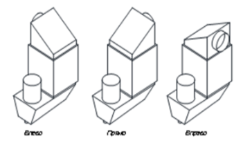 Выходной патрубок очищенного газа может быть ориентирован в три стороны (см.рисунок 4) Направление ориентировки выходного патрубка определяется со стороны входного патрубка. Для аспирационных газо-жидкостных установок «ТАЙРА» с квадратным поперечным сечением (для размерностей 1/1, 2/2, 3/3 и т.п.) ориентировка выходного патрубка задается поворотом отводящего короба. Для других вариантов исполнения желаемую ориентировку необходимо указывать при заказе.