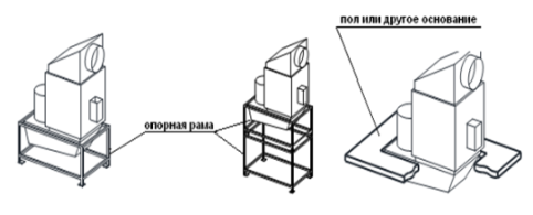 Для транспортировки и установки на рабочем месте аспирационные газо-жидкостные установки «ТАЙРА» комплектуются опорной рамой. При необходимости возможна поставка дополнительной рамы. Высота дополнительной рамы согласовывается при заказе. Возможен вариант установки в вырез в полу либо на других конструкциях (см. рисунок 5).