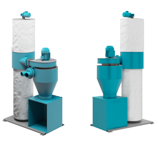 В циклонном модуле осуществляется предварительная фильтрация, отделяющая стружку, а в фильтре происходит окончательная очистка от мелких частиц пыли.