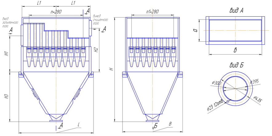 - Количество циклонных элементов в секции – 25,30,40,50,60,80;