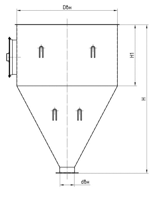 Проектирование бункеров для сыпучих материалов для одиночных циклонов осуществляется чаще всего цилиндрической формы.