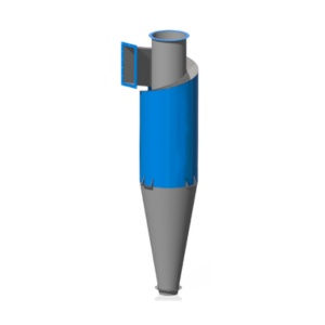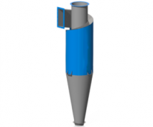 Центробежная сила, усиливающаяся при уменьшении диаметра входного канала, отбрасывает пылевые частицы к внутренней поверхности корпуса. Под воздействием нисходящего закрученного потока воздуха они перемещаются в коническую часть циклона. По мере уменьшения диаметра в этой части возрастает центробежная сила, что позволяет улавливать более мелкие частицы.