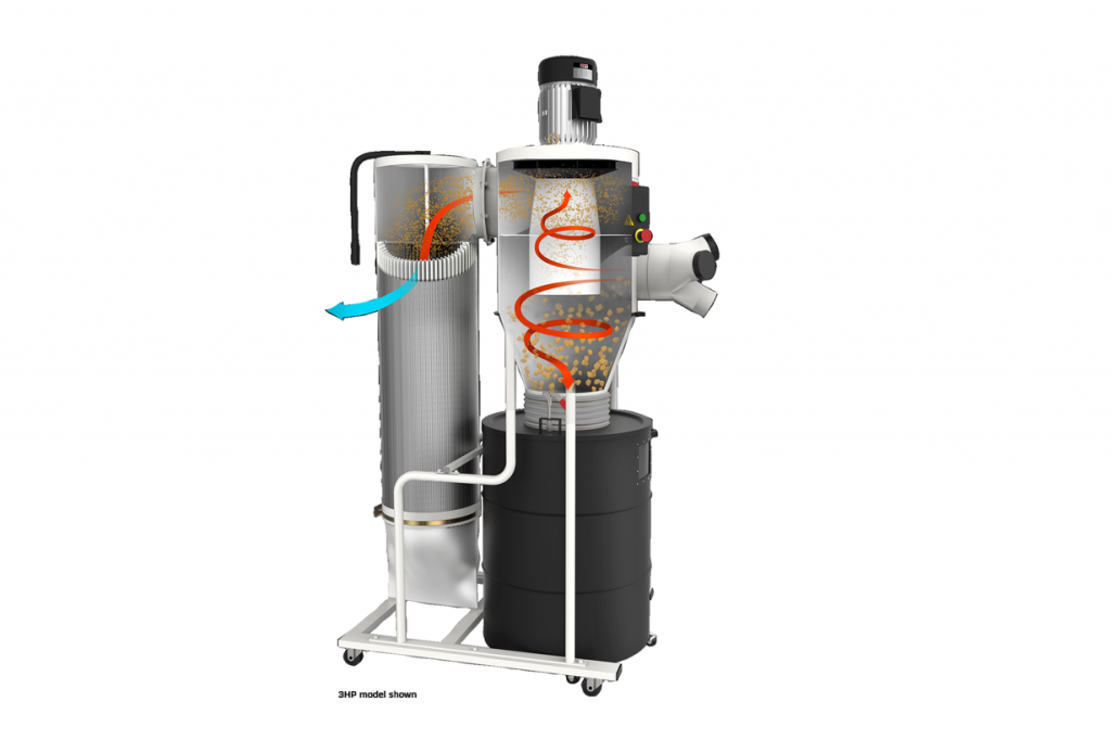 Вытяжная установка с циклонным принципом действия для профессионального использования в сочетании с деревообрабатывающими станками.