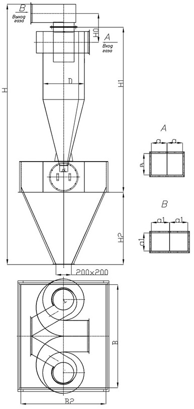 Циклон СЦН-50 предназначен для очистки технологических газов и аспирационных выбросов от средне и мелкодисперсной пыли.