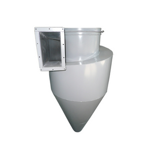 Корпус циклона состоит из двух частей: верхней цилиндрической и нижней конической. В нижней части корпус снабжен патрубком, который вставляется в приемный бункер и вертикальными ребрами жесткости для надежности соединения.