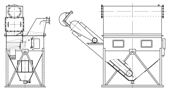 Шлам в процессе работы пылеуловителя ПВМКМА отводится при помощи цепного шкребкового транспортера. Растворенный в воде или осевший в нижней части пылеуловителя шлам, по мере необходимости, сливается через задвижку, расположенную на дне пылеуловителя В зависимости от размера частиц эффективность очистки воздуха составляет: 95-99%.