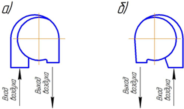 - правое (движение воздуха осуществляется против часовой стрелки).