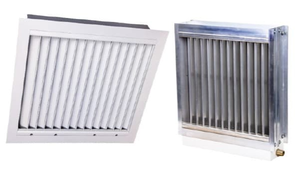 Конструкция РЭД-КУ-К включает жесткую раму и кассету из алюминиевых ламелей специальной формы, которые разделяют общий воздушный поток на множество струй, проходящих через отдельные каналы сложной формы, созданные ламелями.