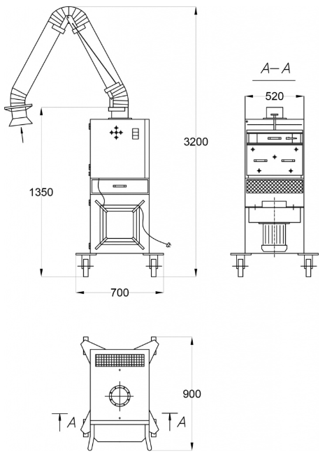 Диаметр вытяжного устройства, мм | 160 | ||