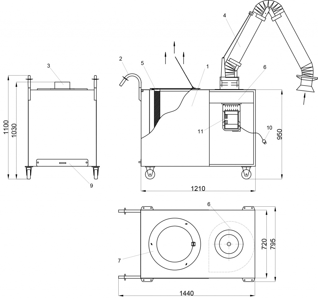 Диаметр вытяжного устройства, мм | 200 | |