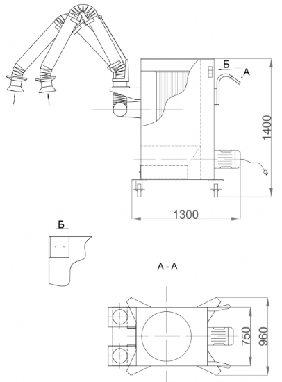 Воздухозаборное устройство позволяет максимально приблизить воронку к источнику вредных выбросов, что повышает эффективность очистки.