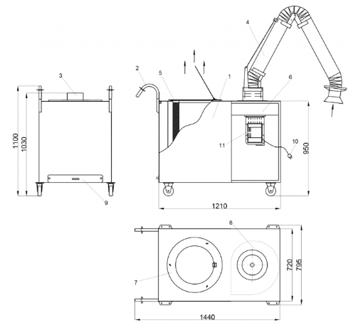 Воздухозаборное устройство позволяет максимально приблизить воронку к источнику вредных выбросов. Фильтр предназначен для очистки воздуха от сварочного аэрозоля, образующегося при сварке и газовой резке, а также от мелкодисперсной сухой, невзрывоопасной и неслипающейся пыли, возникающей при порошковой окраске и механической обработке металлических и пластиковых изделий.