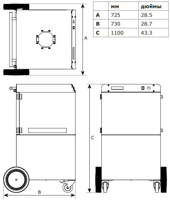 Габаритные размеры фильтра Plymovent MobileGo/3M