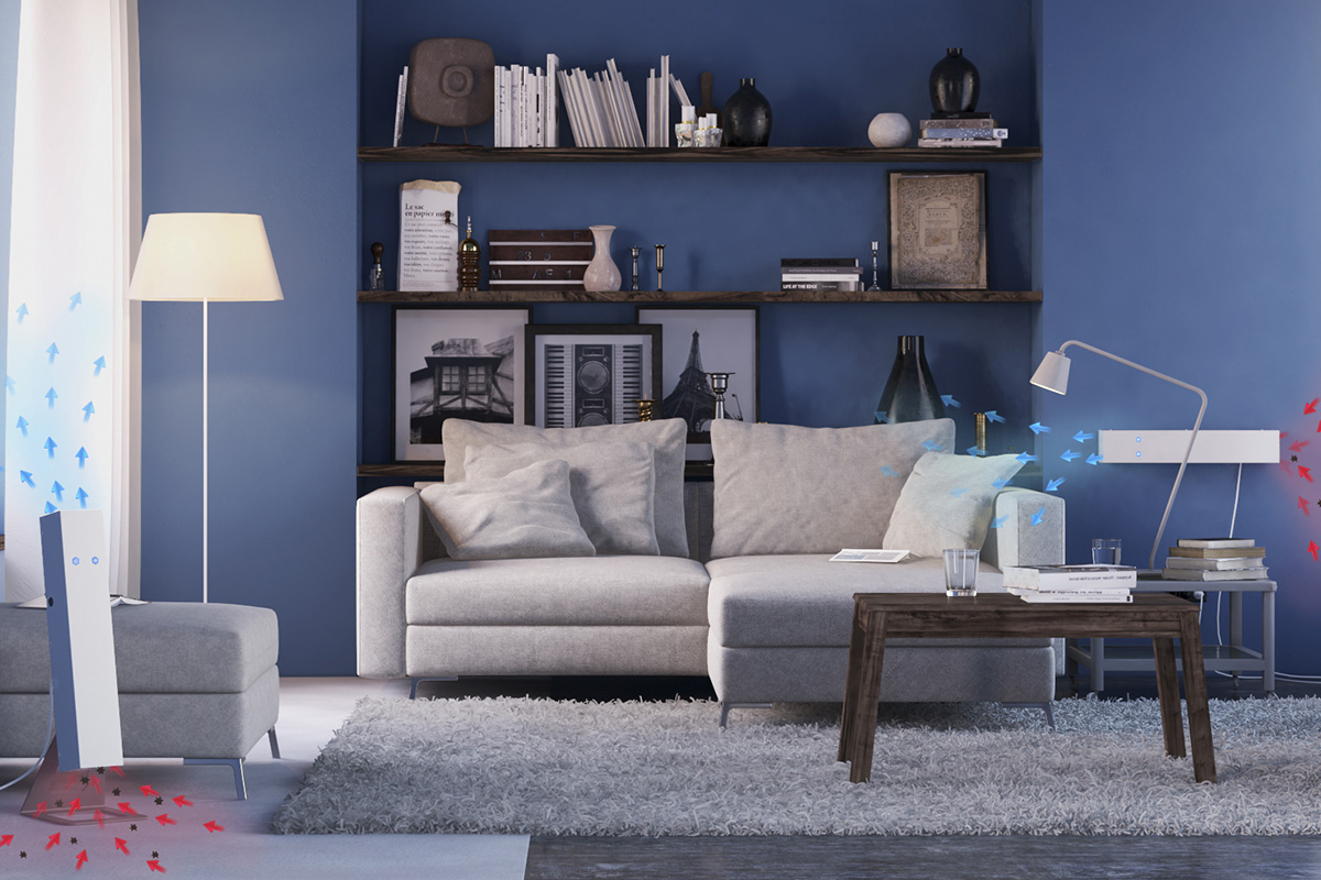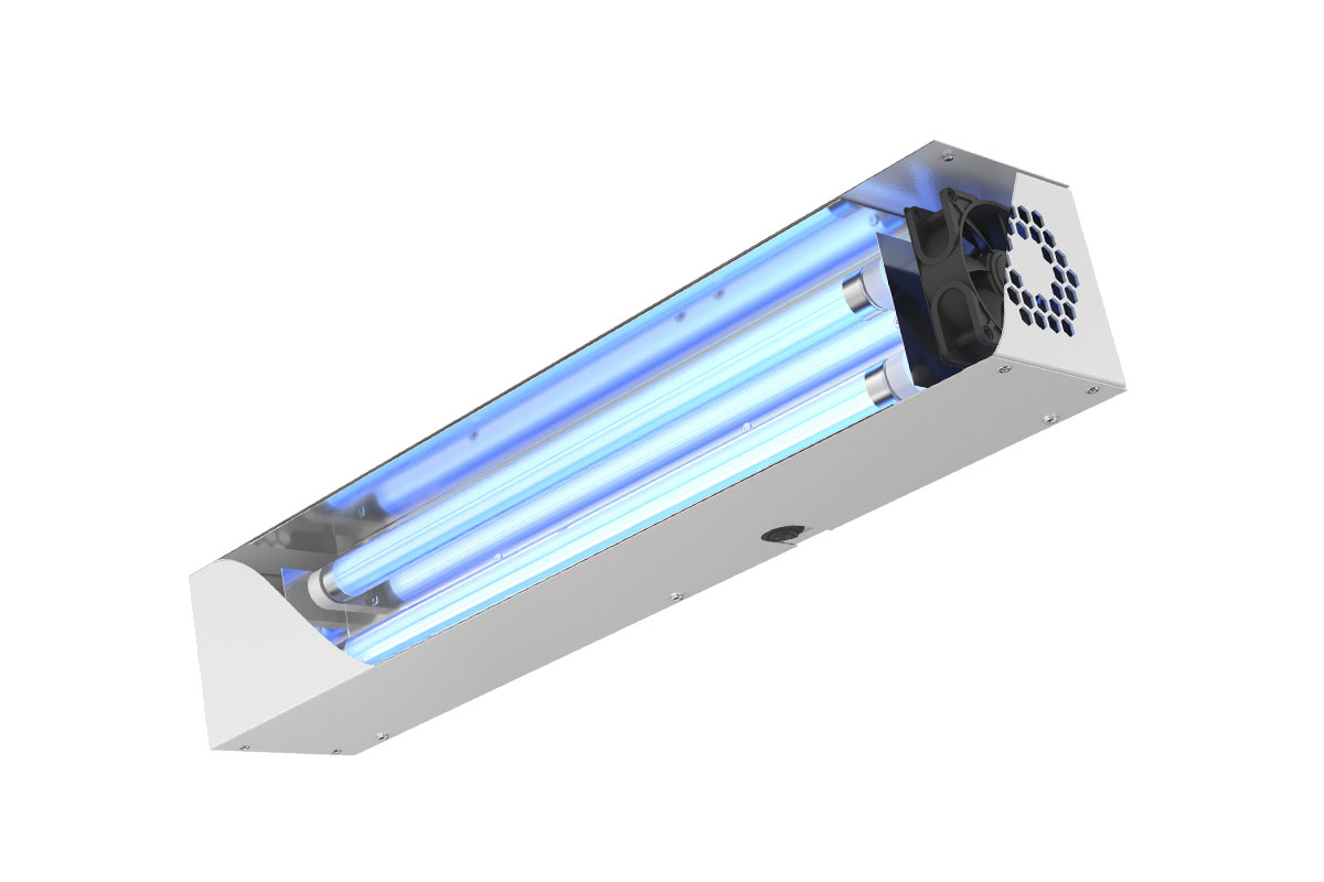 Воздух из помещения проходит через модуль обеззараживания светильника, модуль установлен внутри светильника, УФ-излучение не видно и безопасно для людей.