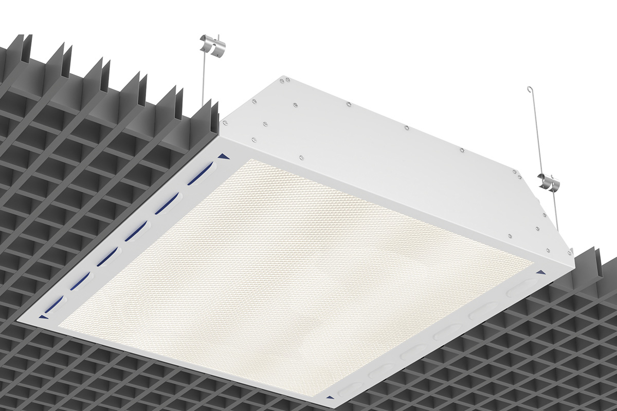 Светильник устанавливается в стандартный потолок АРМСТРОНГ, с размером ячеек 600х600мм, либо в потолок ГРИЛЬЯТО.