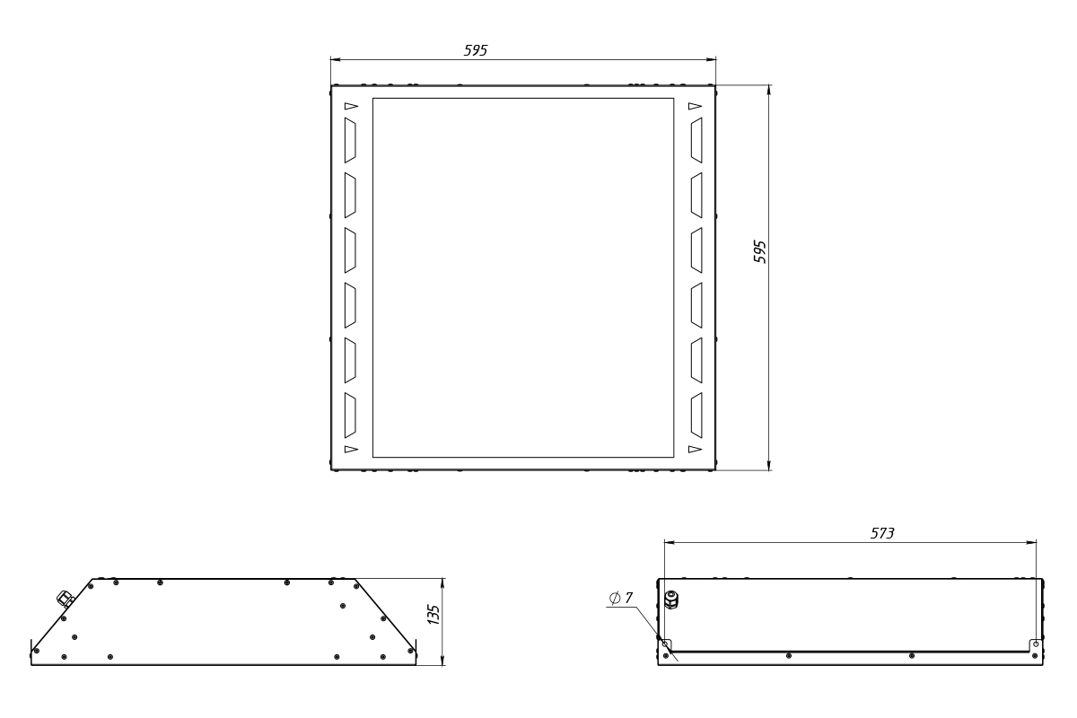 Габаритные размеры для потолка АРМСТРОНГ, (ДхШхВ) мм | 595х595х135 мм |