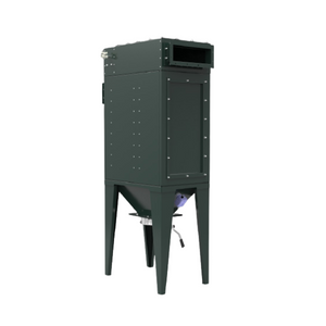 - Опора с бункером, оснащенным ручным затвором для выгрузки и индикатором уровня наполнения или опора с выдвижным ящиком для сбора пыли;