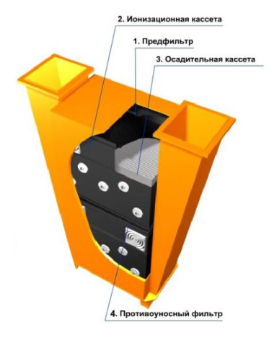 - осадительная кассета для улавливания предварительно заряженных частиц сварочного аэрозоля.